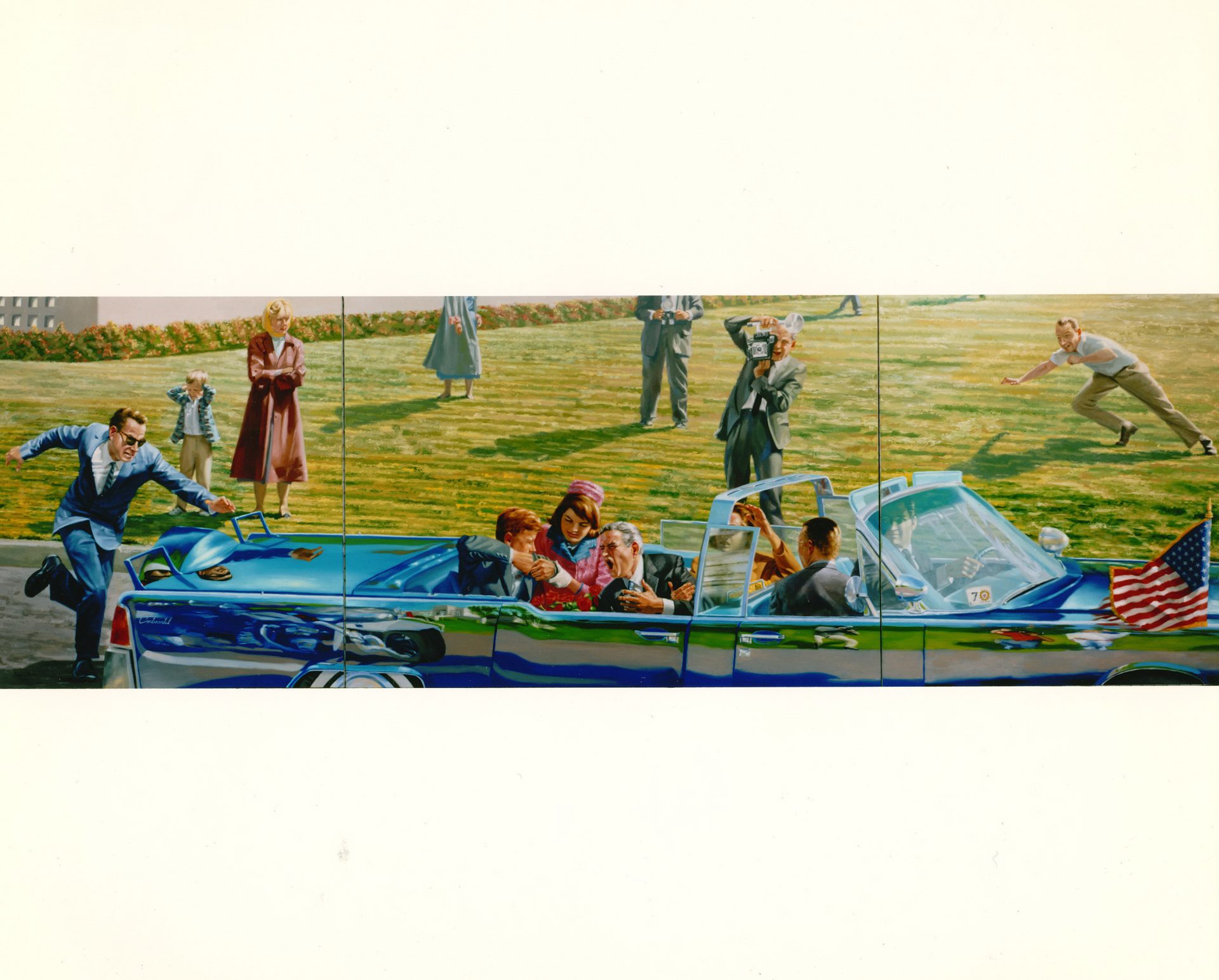 Join the Museum Friday, August 29, 2025, at 1:00 p.m. for a Living History event, part of the Museum’s series featuring childhood recollections. This series coincides with run of the special exhibition, Colorful Memories, November 22 Through a Child’s Eyes, a look at the Kennedy assassination through the lens of childhood. This month the Museum welcomes artist Gage Mace. A longtime artist in Portland, Oregon, Mace responded to the Kennedy assassination in the early 1990s by painting a life-size triptych of the tragedy, inspired by the Zapruder film. He donated the fourteen-foot-long piece to The Sixth Floor Museum in 2020. As a ten-year-old in 1962, Mace saw President Kennedy in Beverly Hills, California.